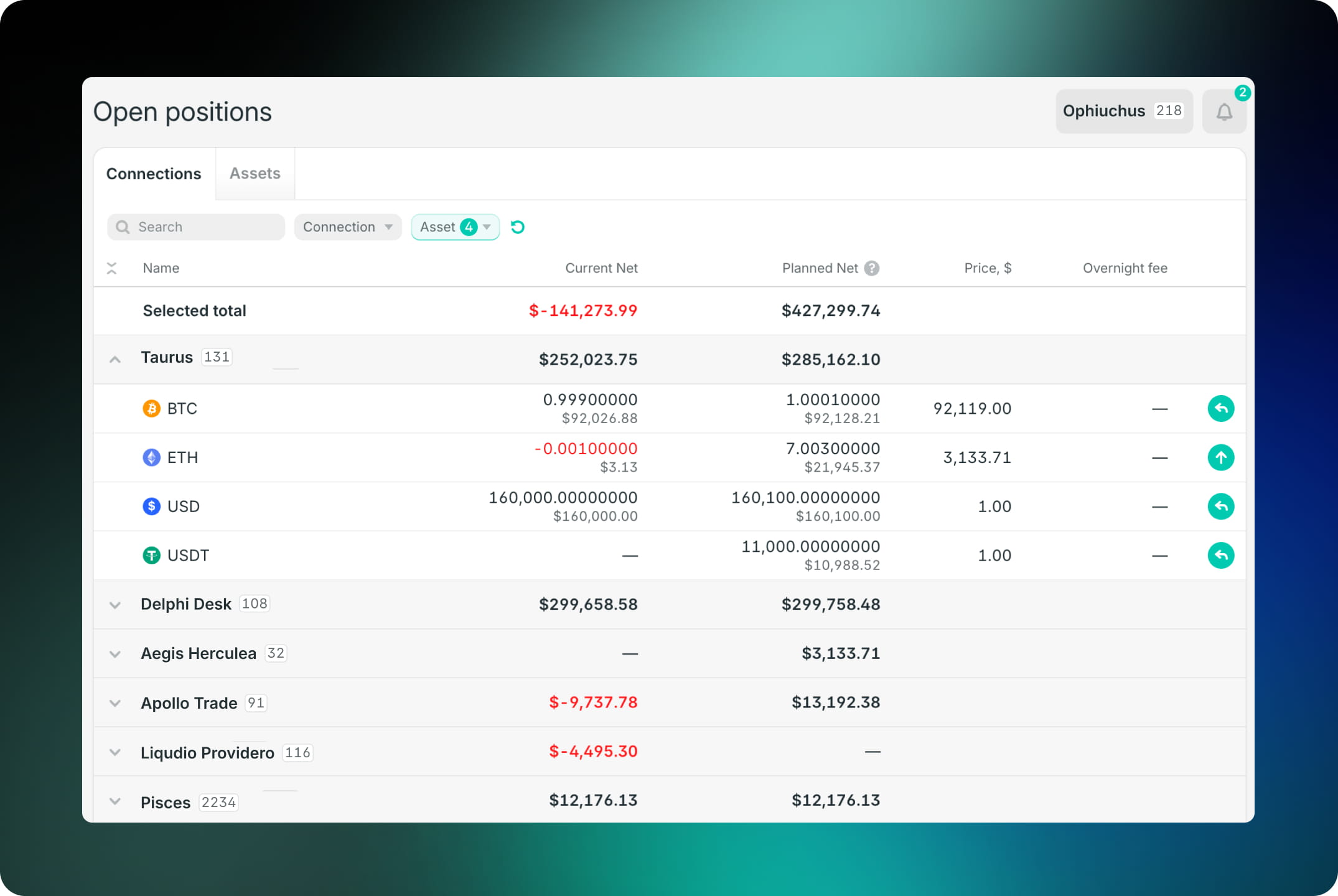 Operations hub: Quick access to front-, mid-, and back-office tasks, including trading, positions, and settlements